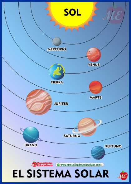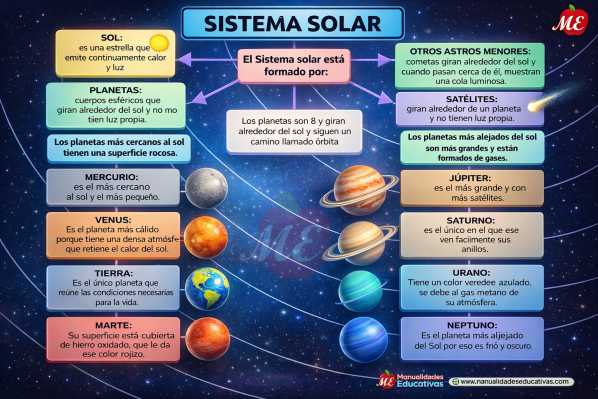 Sistema Solar: Sol, planetas, satélites y asteroides.