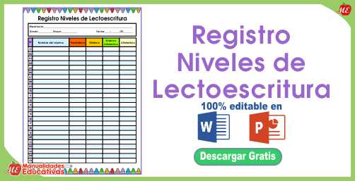 Formato de Registro Niveles de Lectoescritura. Editables en WORD y PPT