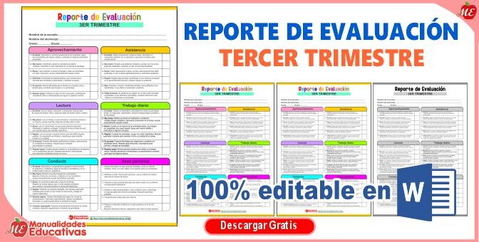 REPORTE DE EVALUACIÓN TERCER TRIMESTRE. Documento Editable en WORD.