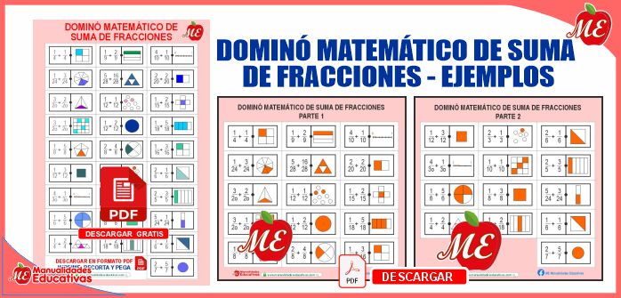 DOMINÓ MATEMÁTICO DE SUMA DE FRACCIONES – EJEMPLOS