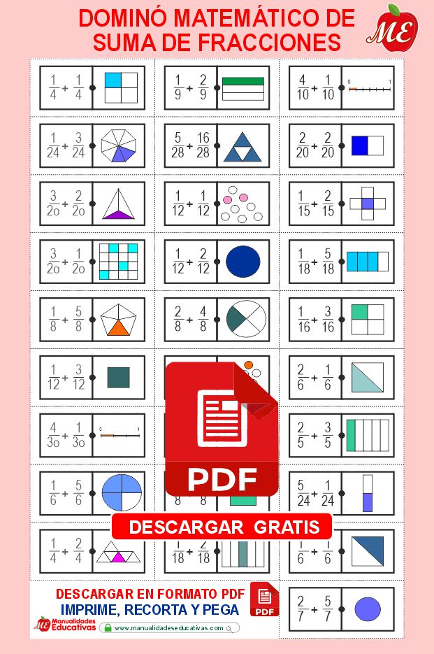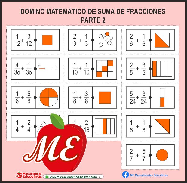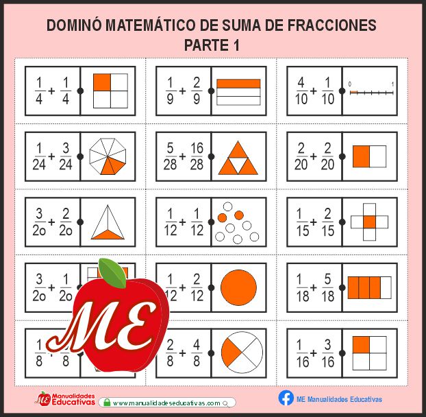 DOMINÓ MATEMÁTICO DE SUMA DE FRACCIONES – EJEMPLOS