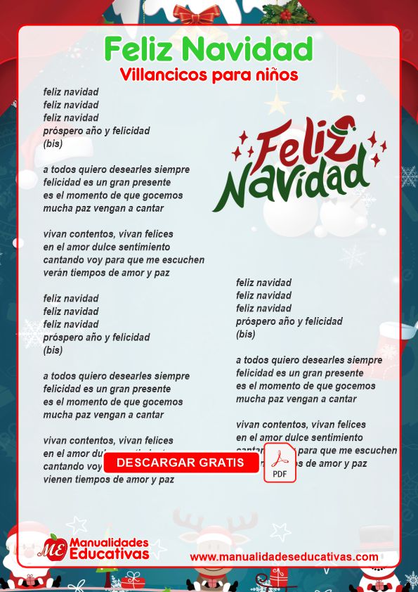 Hoy les compartimos colección de villancicos navideños para niños. Fichas de villancicos navideños para nuestros compañeros, colegas, maestros y padres de familia que nos visitan a nuestra página web https://www.manualidadeseducativas.com/ en esta recopilación de letras de villancicos navideños para preescolar y primaria les encantara cantar a los niños.